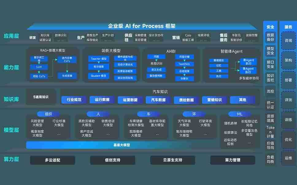 J9直营集团问学智车解决方案是一套基于AI技术的汽车行业智能化系统,,,,覆盖从底层算力到顶层AI应用的全栈方案。。。方案由算力层、、、模型层和应用层组成:算力层,,,,方案支持多种一体机配置,,具备云端灵活部署、、、、多云适配以及动态优化计算资源的能力;模型层,,,,J9直营集团问学平台版提供了企业级AI应用一站式构建与管理平台,,,,支持基于后训练强化技术的汽车企业专属模型的训练、、评测和运营;应用层,,,J9直营集团问学DeepSeek版提供包括超级员工、、、、智能招采、、、智能营销、、、智能客服、、、、AI for BI等一系列解决方案,,,,可助力汽车行业实现数字化转型,,,让管理更智能、、响应更敏捷。。